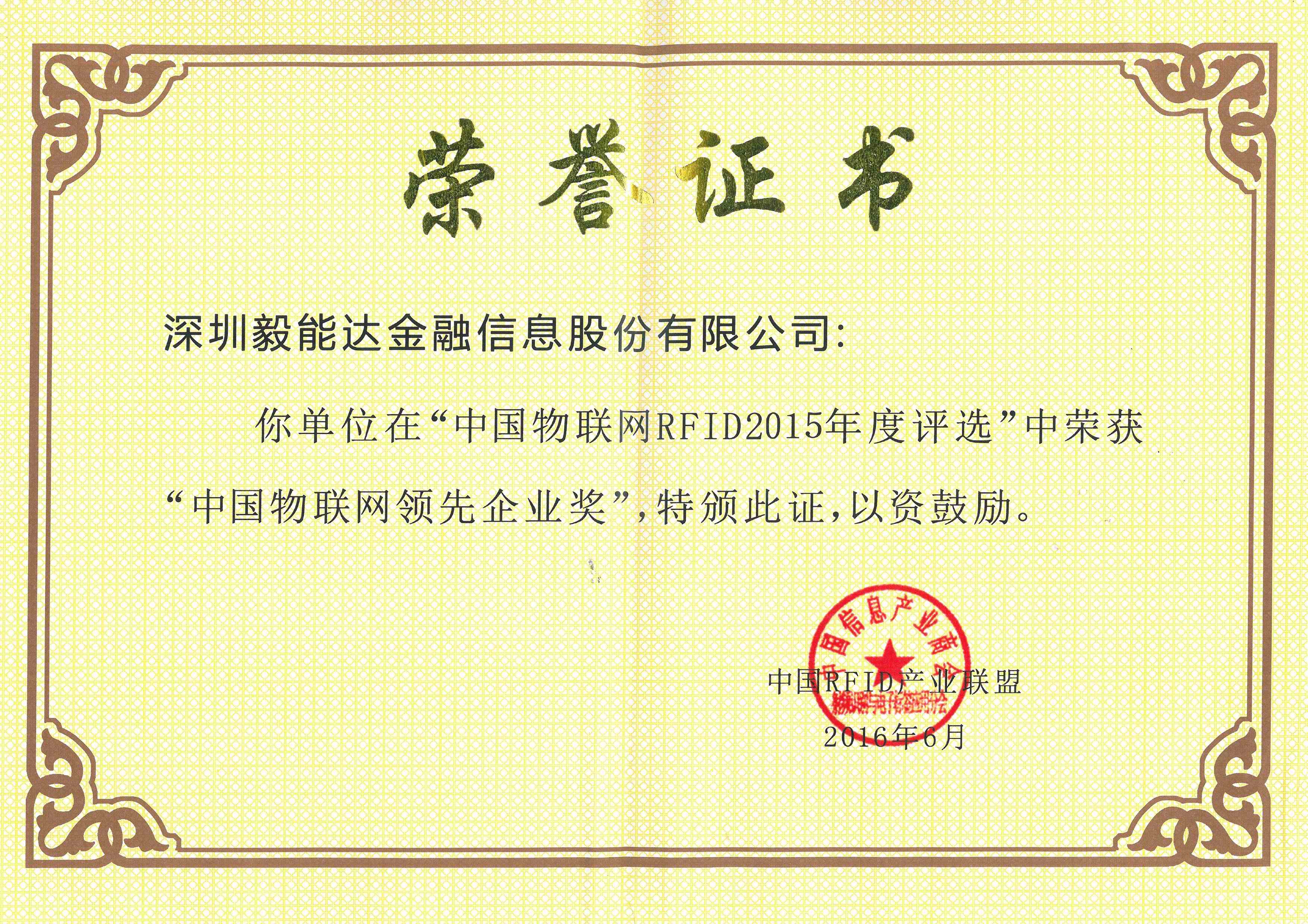 2016年6月13日,由國家金卡工程協調領導小組辦公室指導、中國RFID產業聯盟等單位聯合主辦、RFID中國網承辦的“中國物聯網RFID年度評選”活動于北京圓滿落下帷幕。