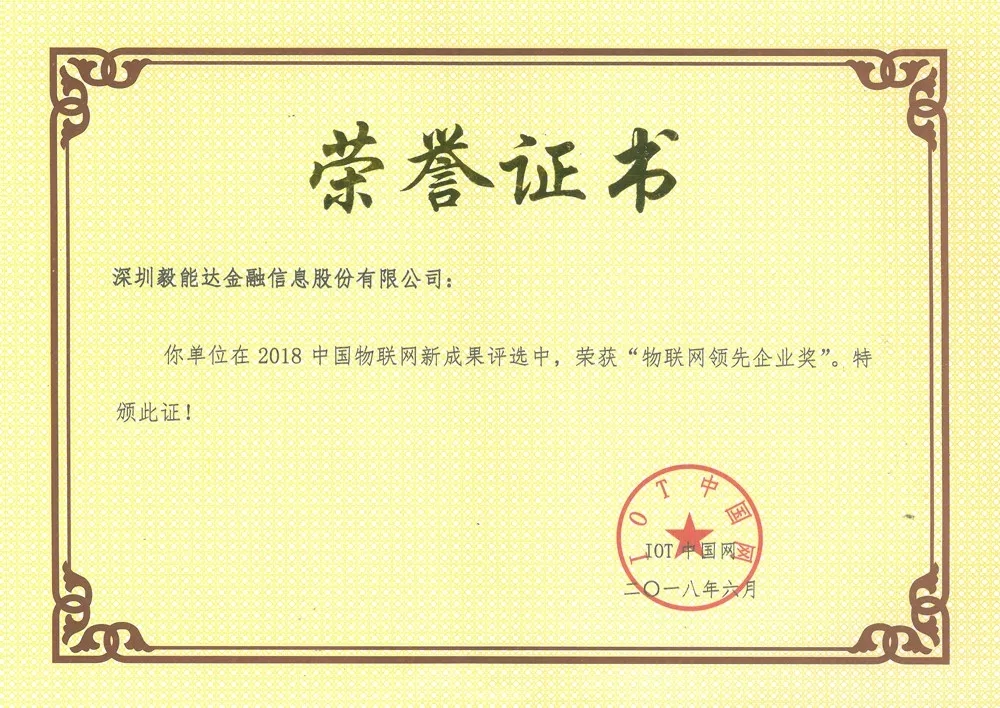 2018年中國(guó)物聯(lián)網(wǎng)新成果年度評(píng)選:毅能達(dá)與慧毅能達(dá)雙雙榮獲大獎(jiǎng)