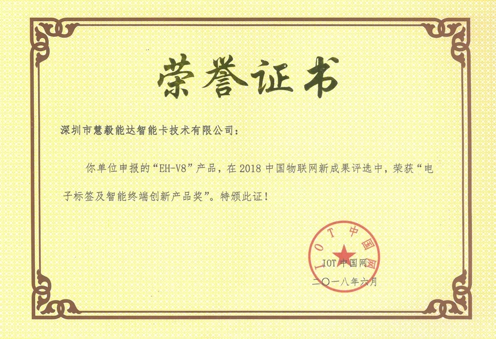 據(jù)了解,在此次2018年中國(guó)物聯(lián)網(wǎng)新成果年度評(píng)選中,毅能達(dá)推出的新產(chǎn)品EH-V8智能手持終端就榮獲了“電子標(biāo)簽及智能終端創(chuàng)新產(chǎn)品獎(jiǎng)”。