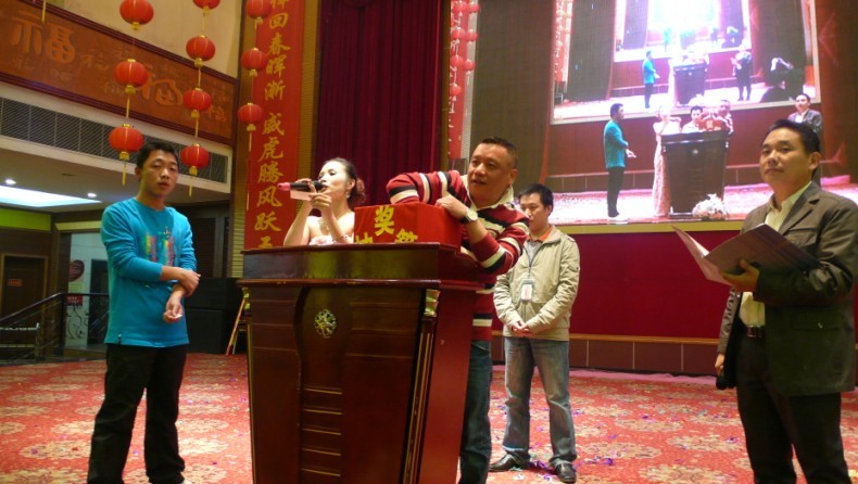 穿插其間的抽獎環節,不斷有驚喜爆出。抽獎的獎品價值成倍上升,筆記本電腦、尼康/卡西歐數相機、LG棒棒堂手機、格蘭仕微波爐、諾基亞手機/三星手機/CNCC手機、GPS導航儀、MP6、九陽豆漿機、美的電磁爐等豐富多彩的獎品紛紛名花有主,現場的氣氛也不斷被推向高潮。