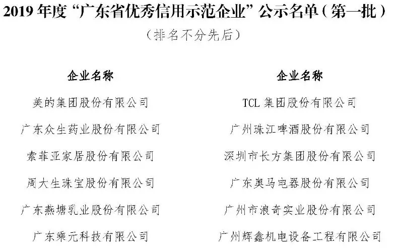 毅能達入選2019年度“廣東省優秀信用示范企業”