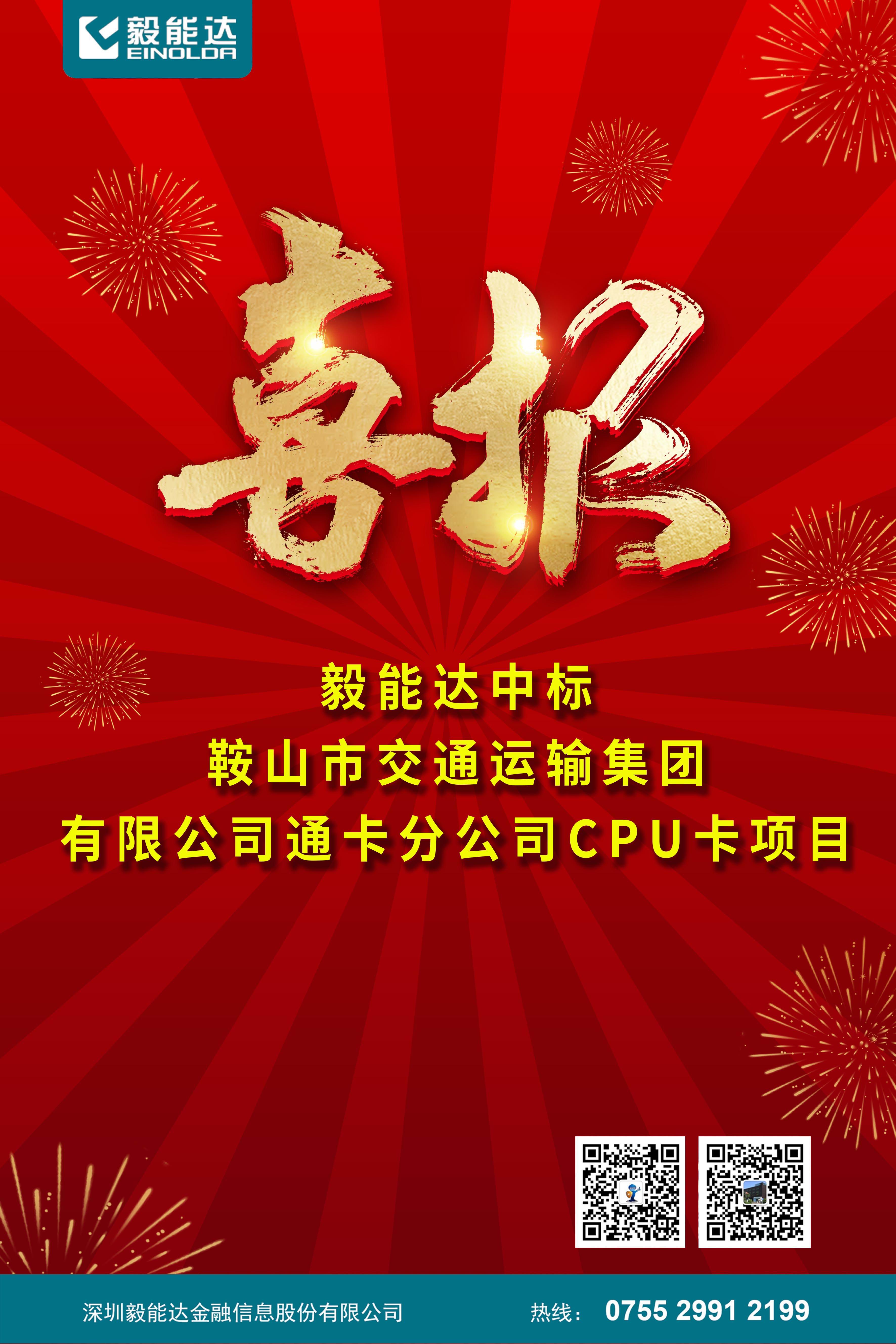 喜訊!毅能達中標鞍山市交通運輸集團有限公司通卡分公司CPU卡項目