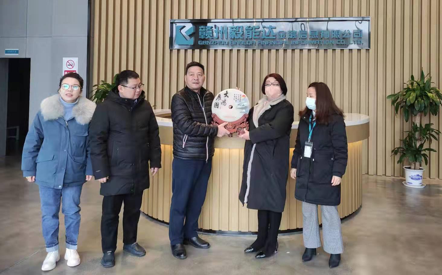 贛州毅能達金融信息有限公司接受了郭書記代表經開區送來的祝福企業″大展宏圖"的禮物。