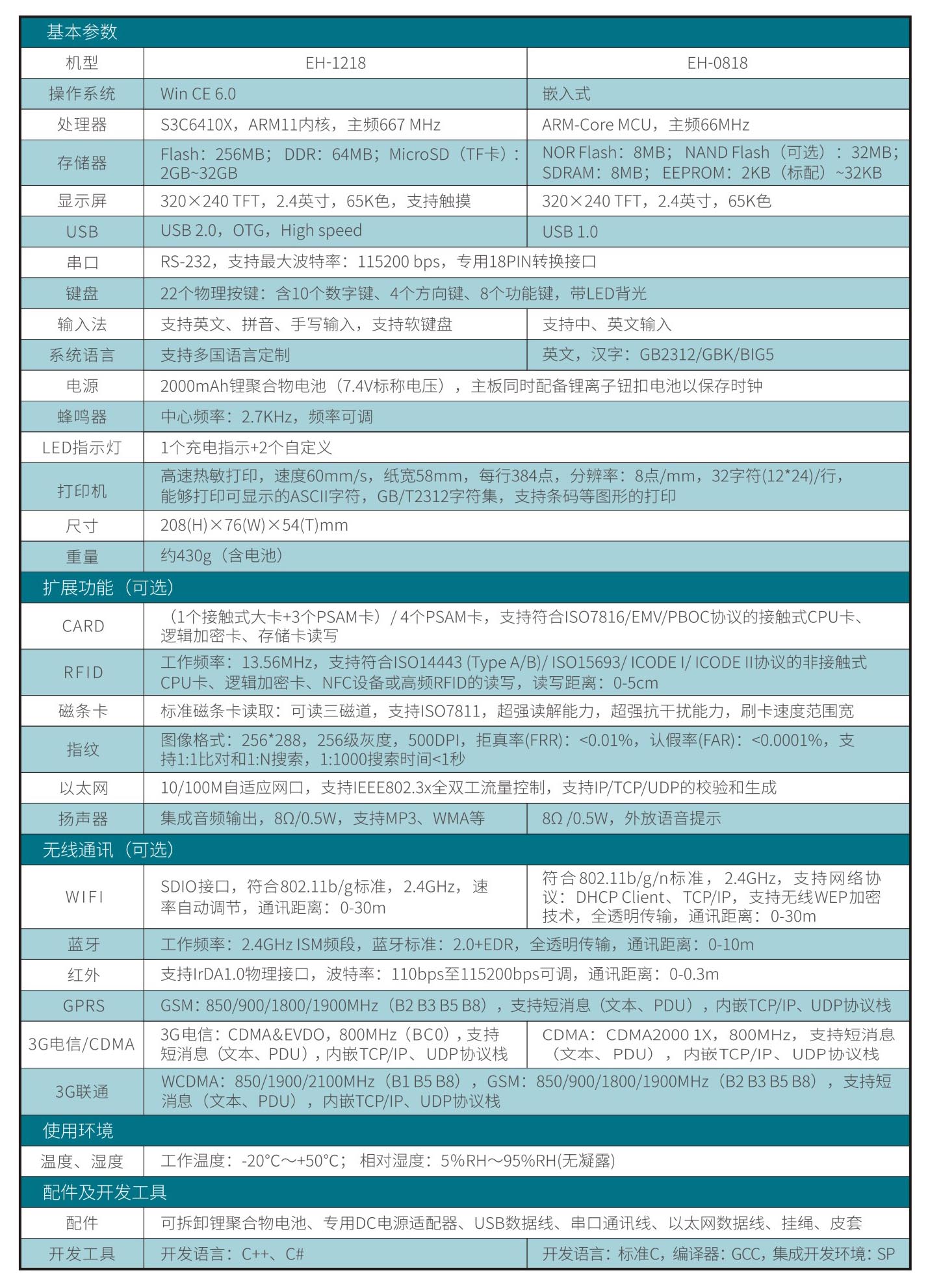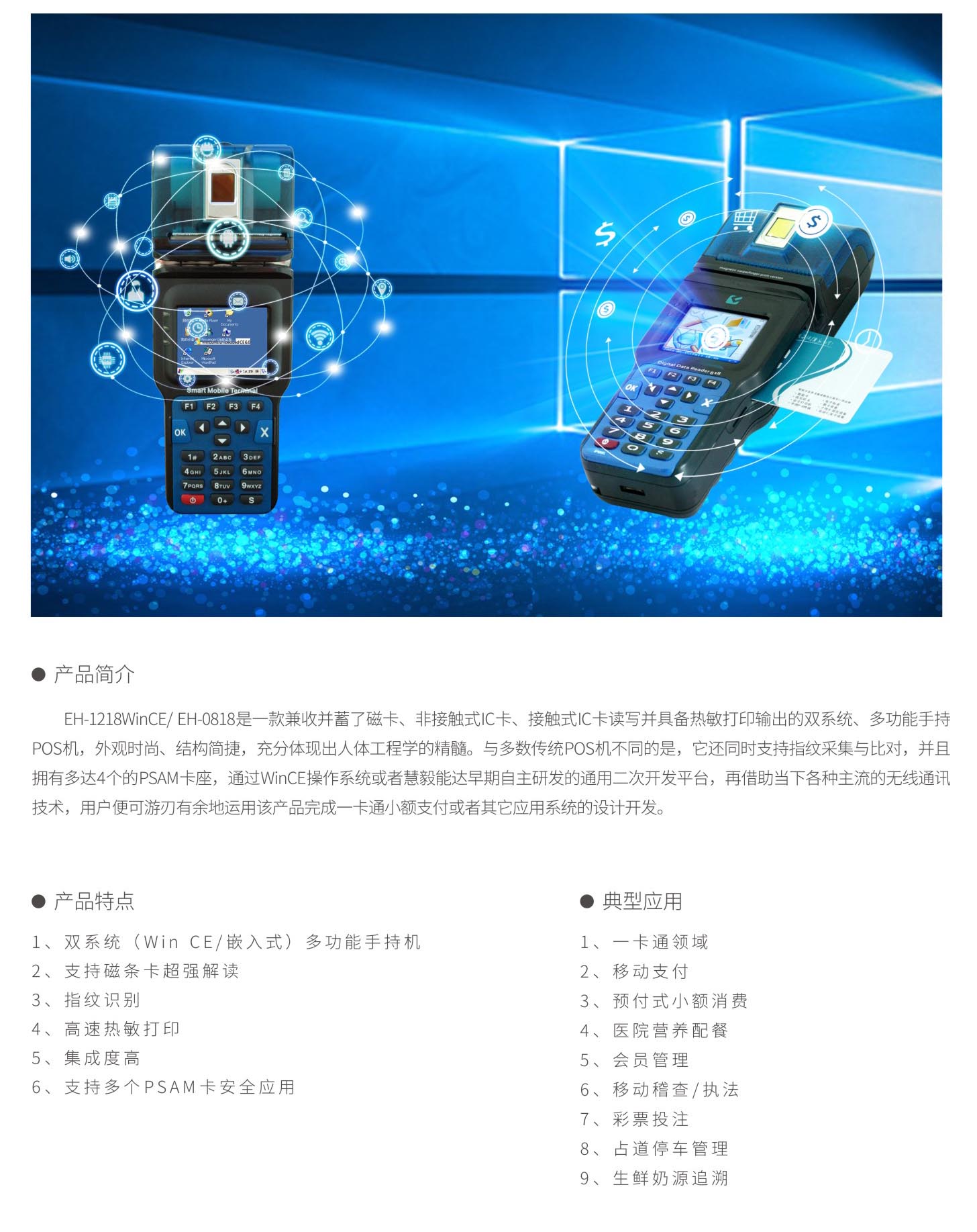 產(chǎn)品名稱:EH-1218WinCE /EH-0818多功能指紋彩屏手持POS機(jī)
